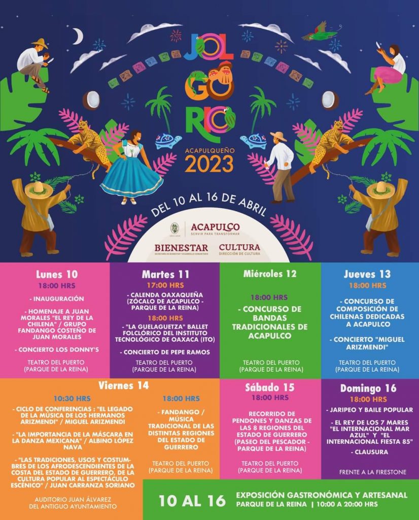 “Con este festival Jolgorio Acapulqueño 2023 buscamos cohesionar la cultura para que tenga su propia identidad, se trata de un festival artístico que busca fortalecer la identidad del puerto de Acapulco, pero también proyectar las costumbres y tradiciones del estado de Guerrero a nivel nacional e internacional, a ese turismo que nos visita queremos ofrecerles atractivos culturales, queremos decirles que en Acapulco hay cultura”.
