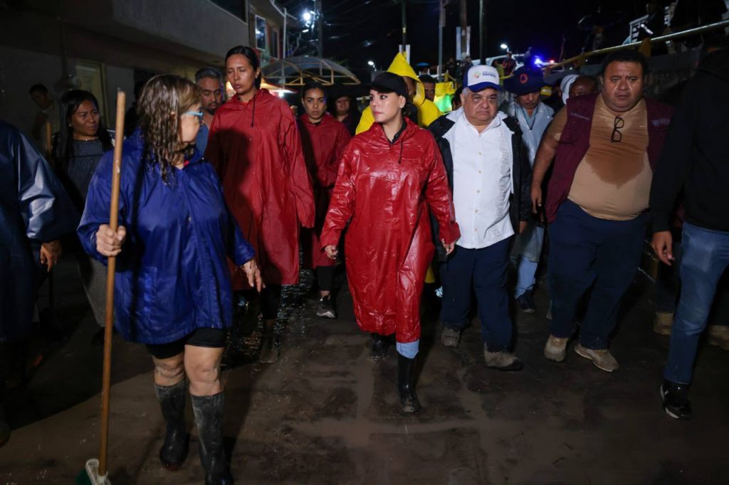 Este jueves por la noche la gobernadora acudió a la zona donde cayó una tromba que dejó daños en vialidades, en tiendas comerciales, en un centro de salud y en varias viviendas.