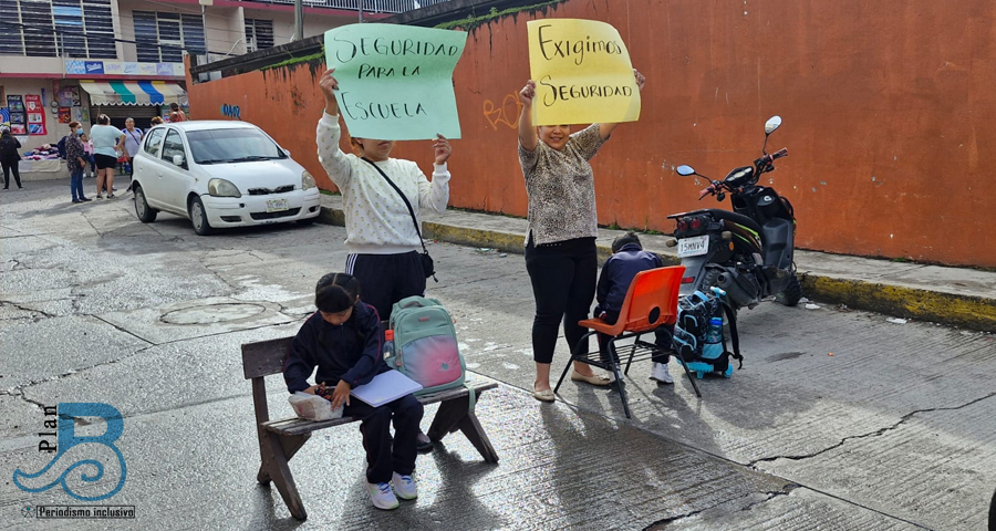Al notificar a los padres y madres de familia, decidieron manifestarse y bloquear las calles aledañas a la escuela para exigir la presencia de autoridades educativas.