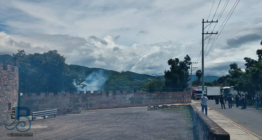 Después de que concluyó la protesta, llegaron a este sitio una camioneta y una pipa de Bomberos que acudieron a sofocar un pequeño incendio de una zona de pastizales al interior de esas instalaciones.
