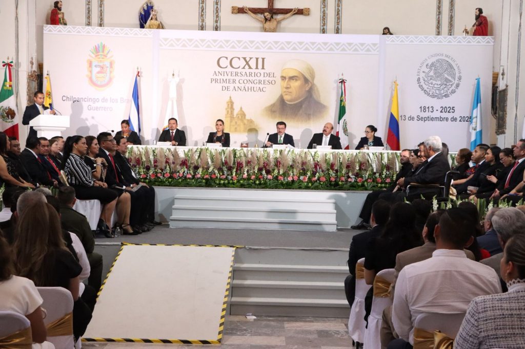 Recordó que el Primer Congreso de Anáhuac, celebrado en Chilpancingo en septiembre de 1813 bajo la conducción del Generalísimo José María Morelos y Pavón, fue un evento trascendental que marcó el rumbo del país, y destacó que en ese Congreso nació por primera vez la idea de México como nación libre, soberana e independiente, basándose en los principios que hasta la fecha siguen vigentes para garantizar la soberanía popular, la igualdad ante la ley, la justicia por encima de los privilegios y la independencia política como fundamento de la libertad.