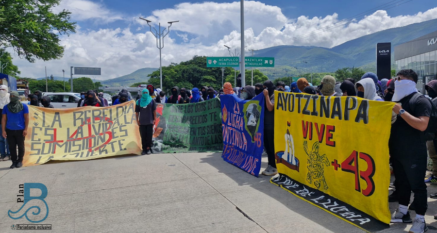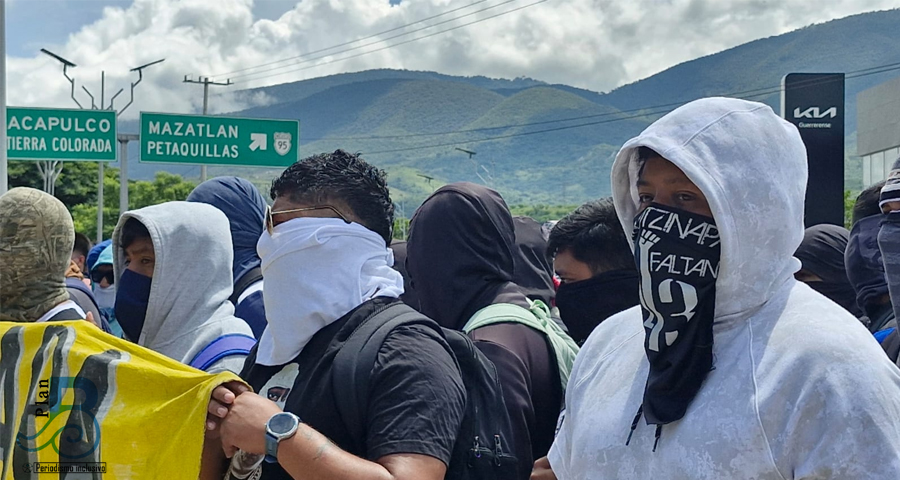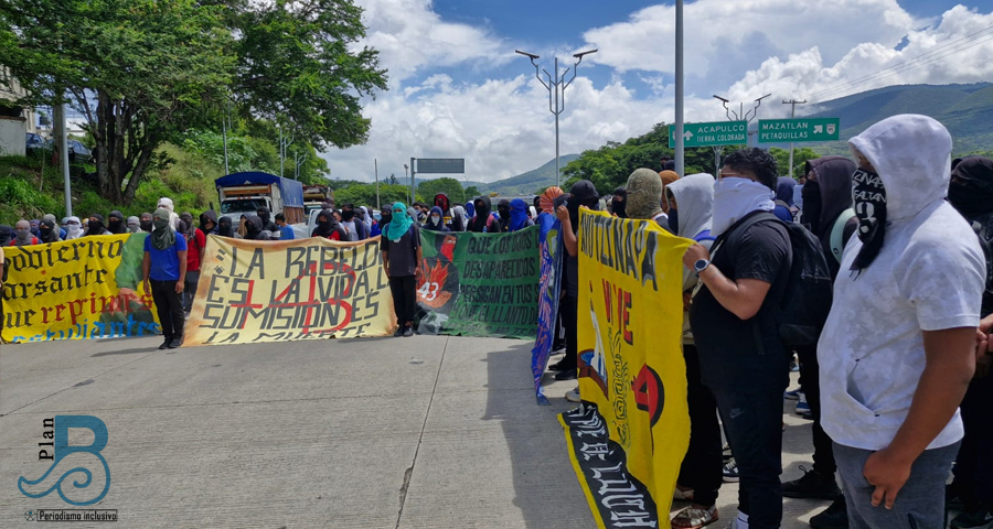 Como cada año, con lonas, pancartas y consignas exigieron justicia sobre esta carretera federal, por sus compañeros y por los miles de desaparecidos en el país y el Estado de Guerrero.