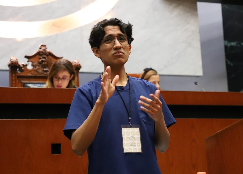 Durante su participación en el primer Parlamento de Personas con Discapacidad en Materia de Educación Inclusiva que organizó el Congreso del Estado este viernes, expresó mediante lengua de señas que hay testimonios de personas sordas que se han suicidado por la discriminación y humillaciones que sufren tanto de profesores como de la familia y amigos.